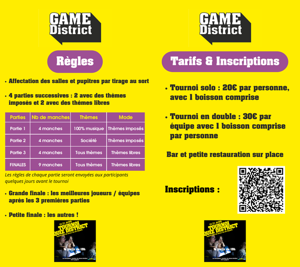 Game District organise un tournoi de Quiz le mardi 21 avril à partir de 19h.